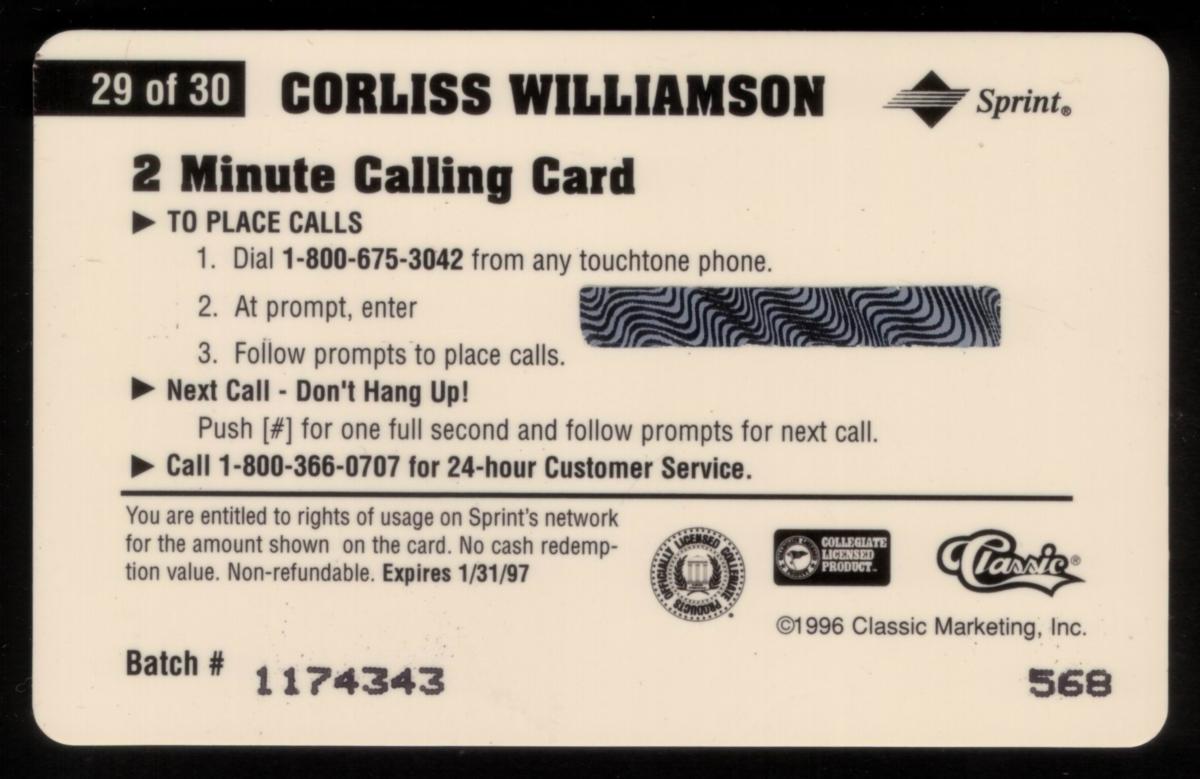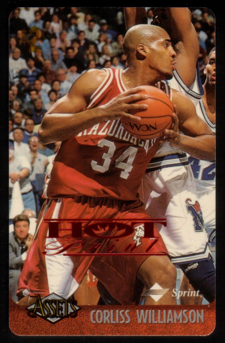 This card captures a dynamic moment in Corliss Williamson’s collegiate basketball career, emphasizing his strength and focus on the court. The image and design elements combine to make this a valuable collectible for fans of NCAA basketball and card collectors alike.