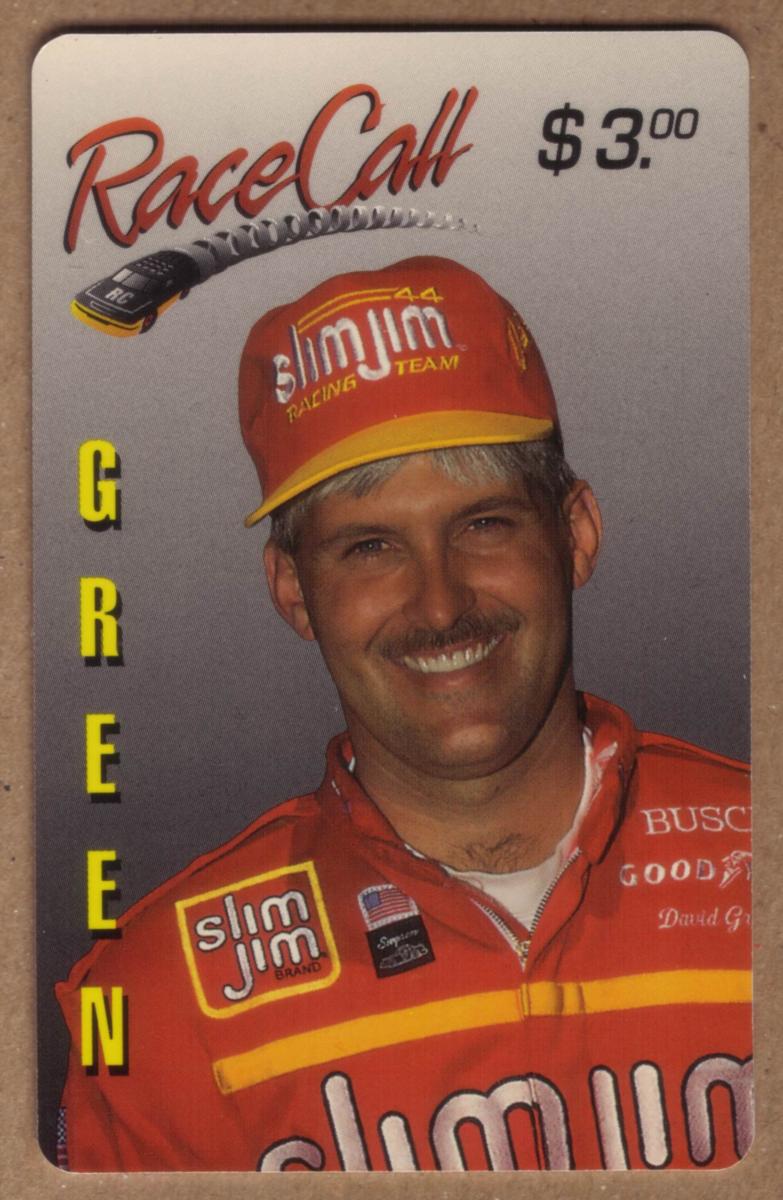 This collectible card features a detailed portrait of David Green, a professional NASCAR driver known for his association with Busch and Slim Jim brands. The image captures David Green in his racing suit, branded with logos including Busch and Slim Jim, indicating his sponsorship ties. The card highlights the theme of auto racing, specifically NASCAR, and automotive sports.