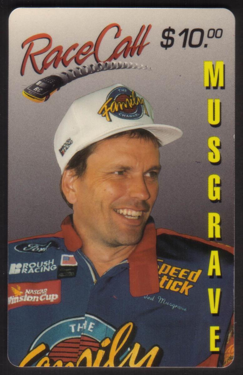 The card is marked with a $3 denomination, indicating its value in its original use or collectible status. The combination of Ted Musgrave’s portrait, racing imagery, and sponsorship logos makes this card a distinct piece that celebrates his racing career and the NASCAR Winston Cup series.
