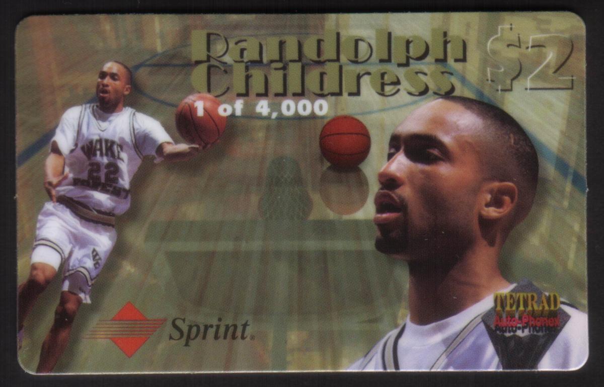 This is a collectible phone card that combines sports imagery with telecommunications branding, featuring Randolph Childress as the basketball athlete. The card is part of the Auto-Phonex Tetrad series and carries a $2 value, making it suitable for collectors interested in sports-themed phone cards.