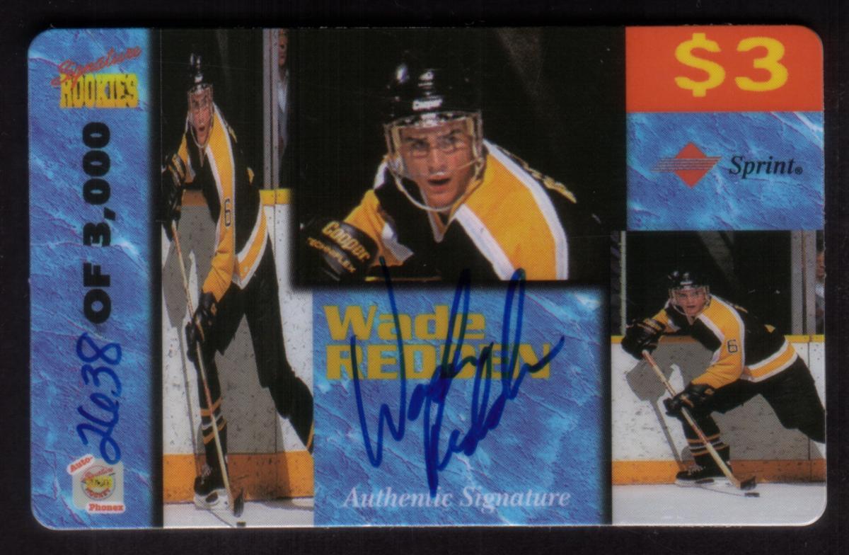 Overall, this hockey card highlights Wade Redden’s rookie status and features an authentic autograph, making it a valuable sports collectible for hockey fans and autograph collectors. The card's design and limited edition numbering emphasize its rarity and significance in the hockey memorabilia market.