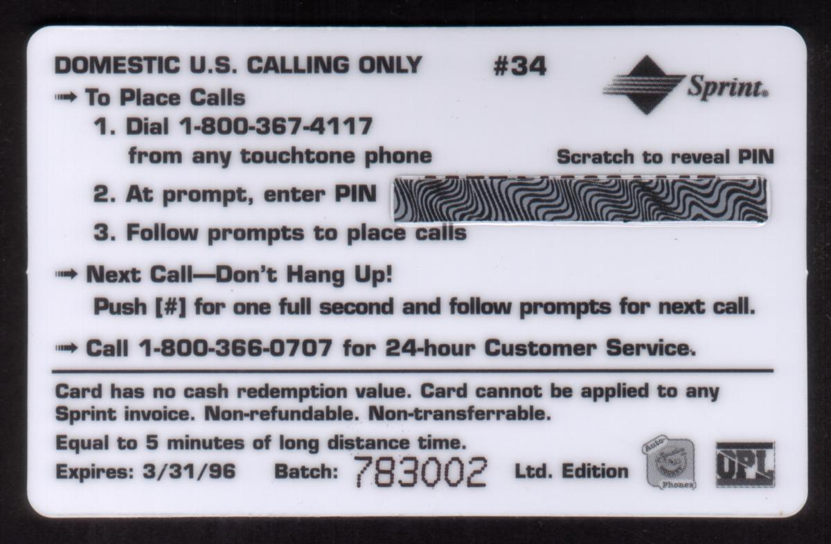 Since we have the world's largest inventory of USA phonecards for collectors, you will not necessarily receive the identical serial/batch/PIN number that we have scanned/pictured.