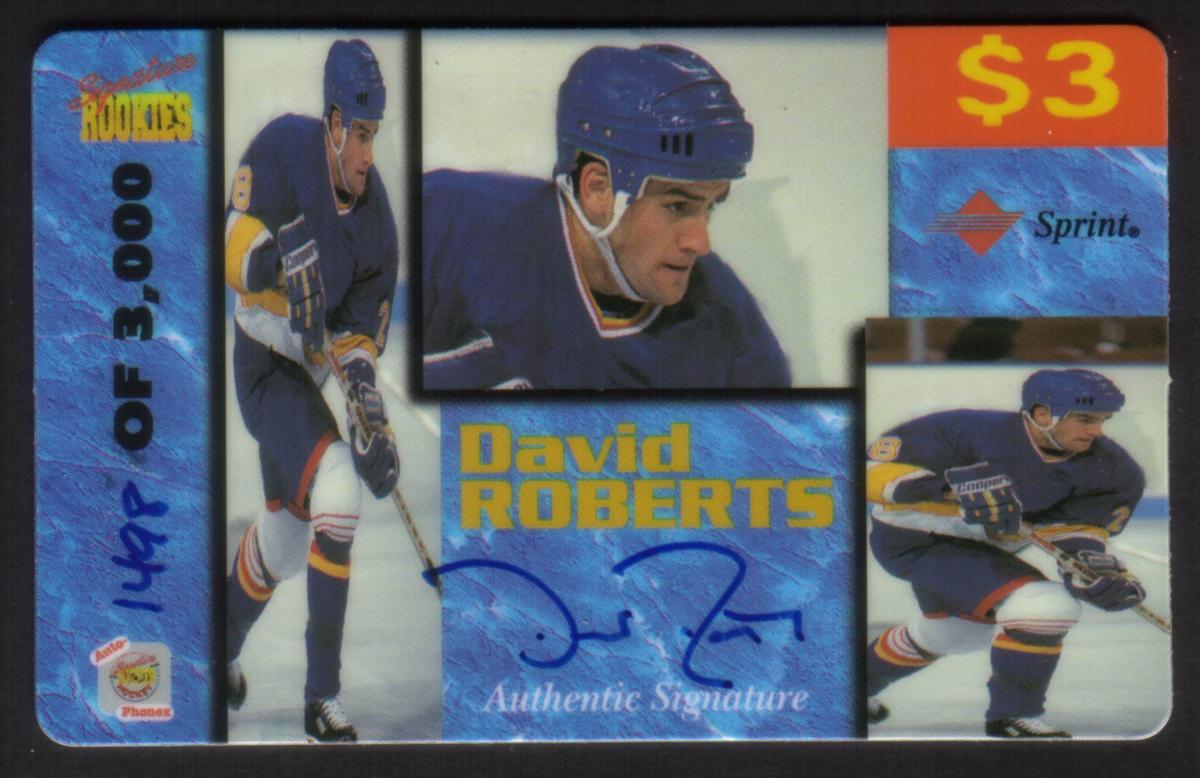 This hockey card is a part of the sports category, specifically ice hockey collectibles. It celebrates David Roberts’ rookie status within the Auto-Phonex Signature Rookies series, combining player imagery, official logos, and authentic autograph to create a valuable item for collectors and hockey fans.