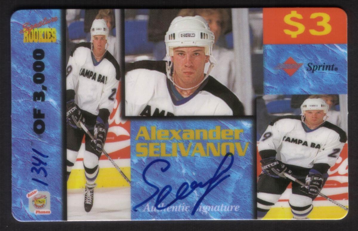 Overall, this item represents an official signed rookie card of Alexander Selivanov linked to the hockey sport, made available through Sprint and identified as card number 39. It is suitable for collectors interested in sports memorabilia, specifically ice hockey and player autographs.
