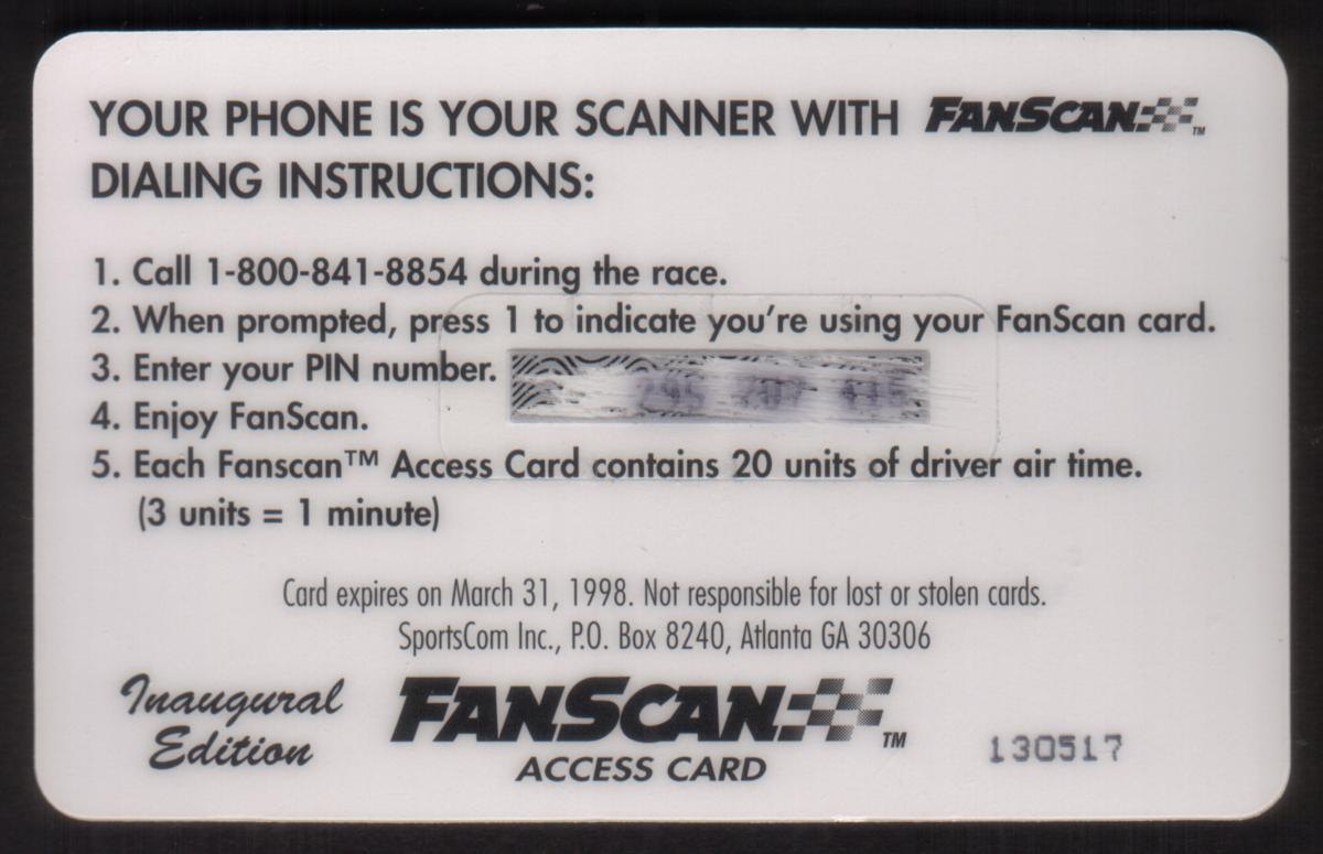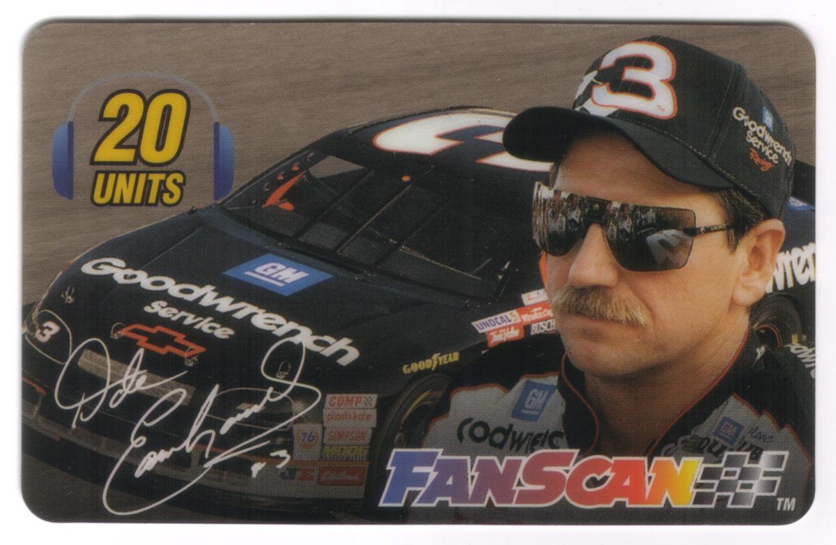 Issued in April 1997, this card is related to auto racing and automobiles, highlighting Dale Earnhardt's legacy in the sport. This is a retail 20-unit FanScan Inaugural Edition card featuring Dale Earnhardt with his number 3 automobile.
