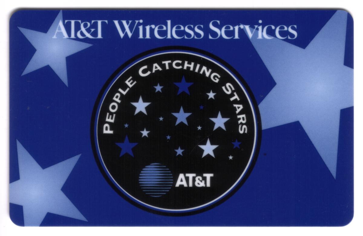 The overall design presents a clean and bold star motif consistent with the "People Catching Stars" theme, emphasizing the connection to AT&T Wireless Services. The combination of dark and light blues with white text and imagery gives the card a distinctive and visually appealing appearance.