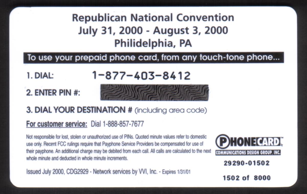 | $10. Republican National Convention 2000. 'Philadelphia' Pennsylvania |