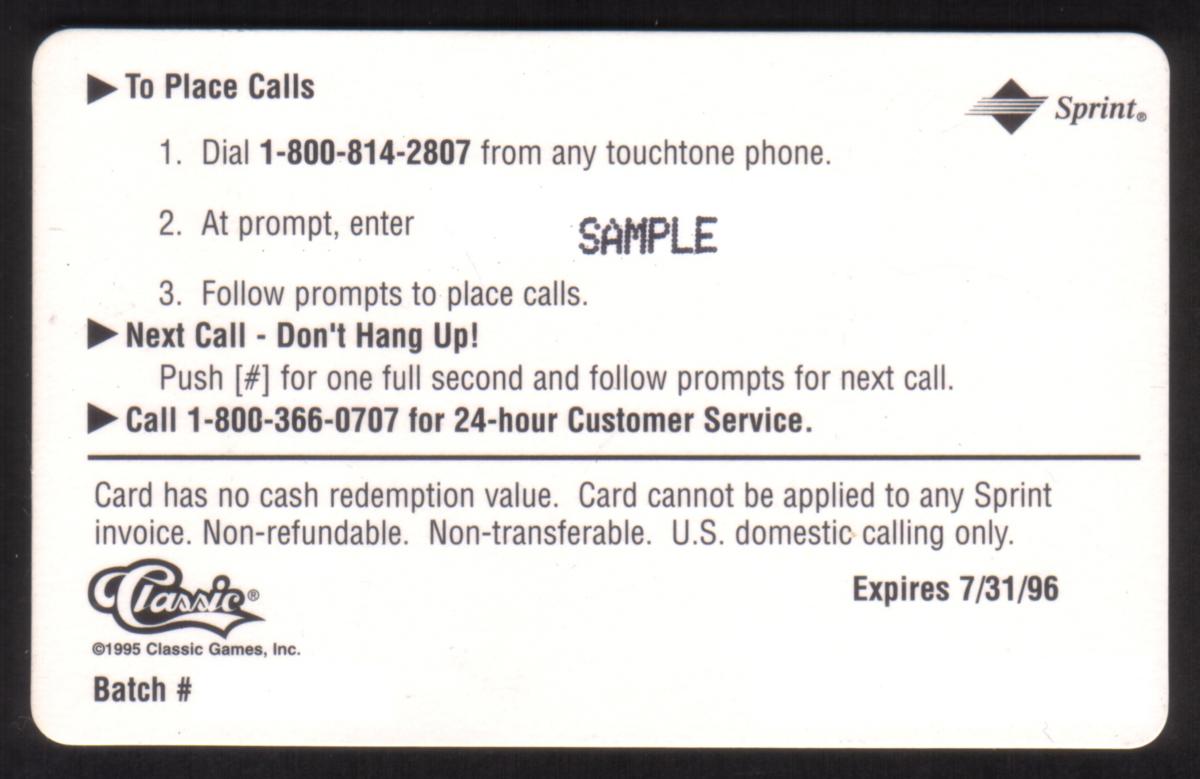 Since we have the world's largest inventory of USA phonecards for collectors, you will not necessarily receive the identical serial/batch/PIN number that we have scanned/pictured.