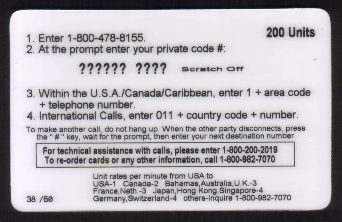 Since we have the world's largest inventory of USA phonecards for collectors, you will not necessarily receive the identical serial/batch/PIN number that we have scanned/pictured.