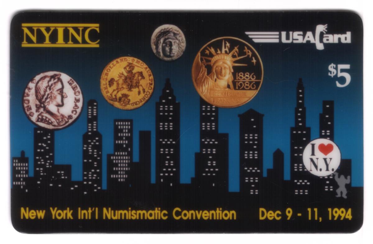 Keywords: 1994, Show Cards, collectibles, coin collecting, coins, money, monies, currency, currencies, numismatics, I love New York City, city skylines, coin convention, gold coins, ancient coins, USACard Corporation
