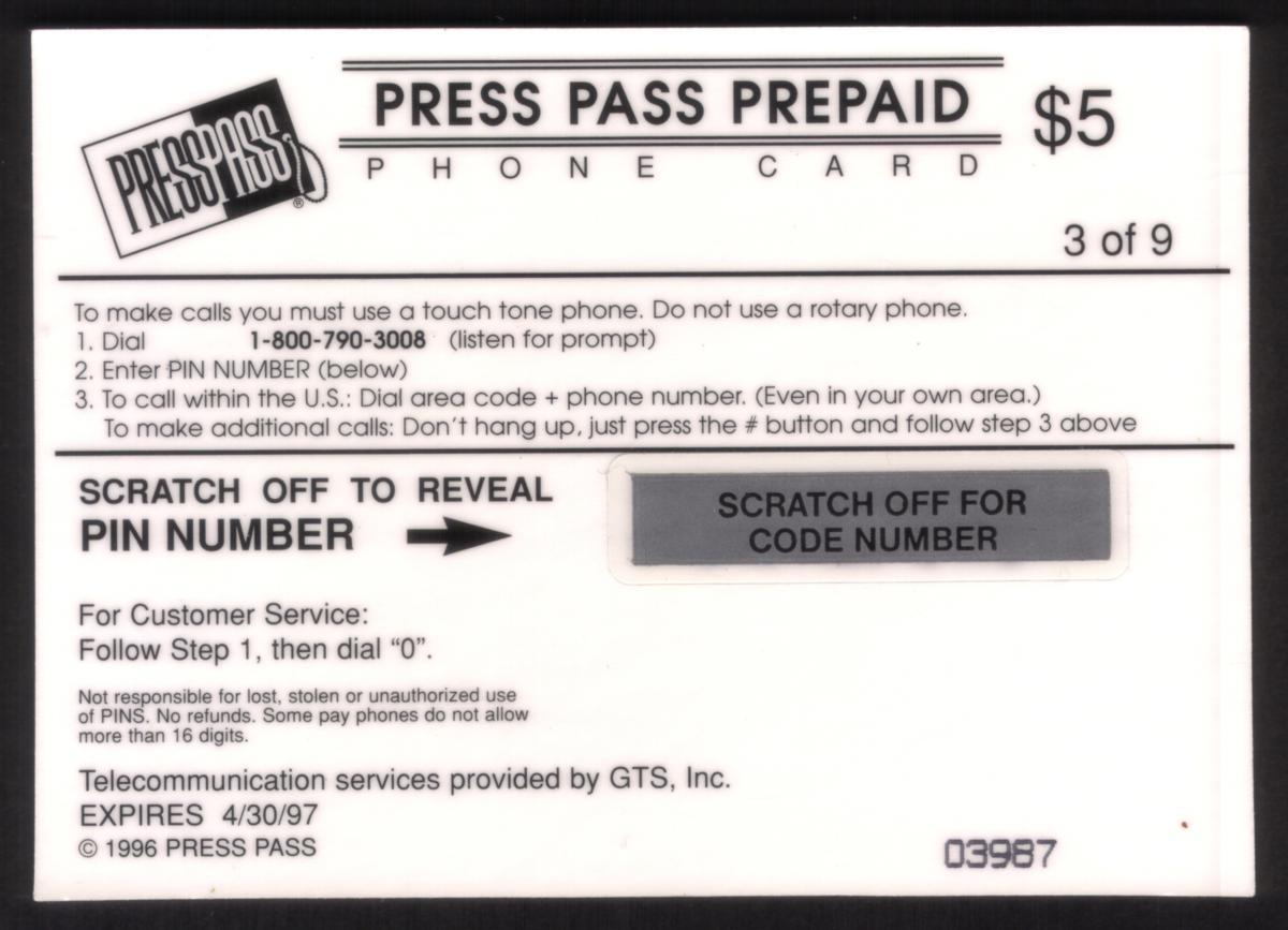 Since we have the world's largest inventory of USA phonecards for collectors, you will not necessarily receive the identical serial/batch/PIN number that we have scanned/pictured.