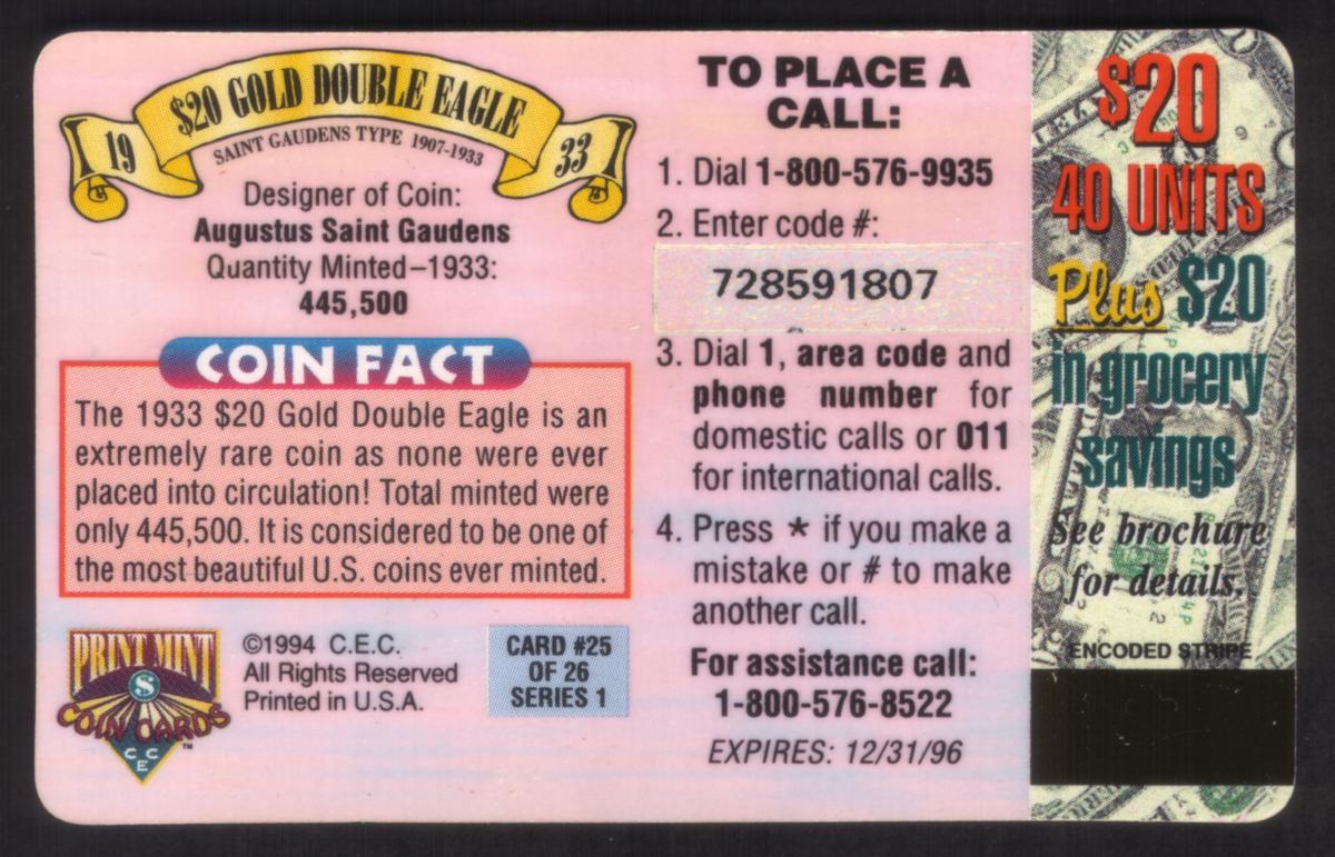 Since we have the world's largest inventory of USA phonecards for collectors, you will not necessarily receive the identical serial/batch/PIN number that we have scanned/pictured.