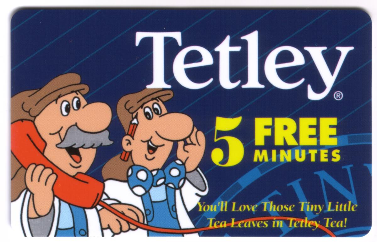 Overall, this collectible phone card represents a fusion of telephone imagery, promotional drinks artwork, the Tetley Tea theme with characters Gordon and Maurice, and the CoinEx collectible reference. It serves as a branded item reflecting both telephony and beverage promotion in a cartoon style.