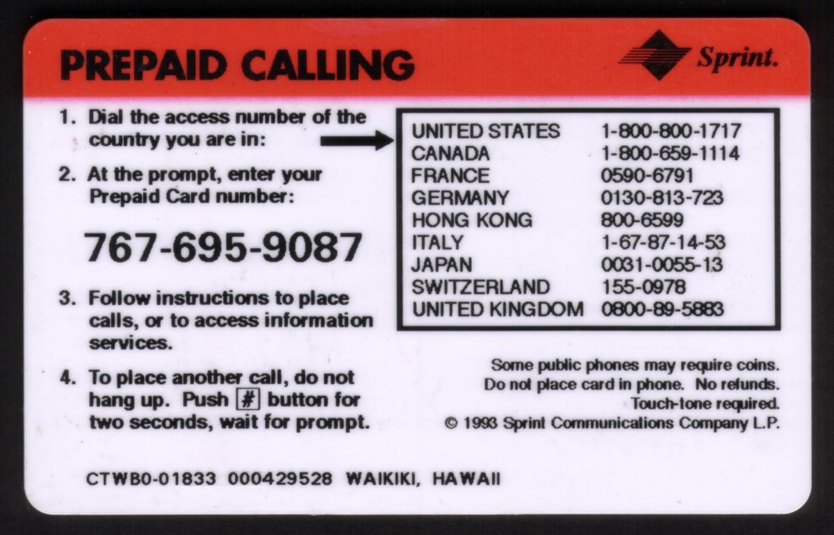 Since we have the world's largest inventory of USA phonecards for collectors, you will not necessarily receive the identical serial/batch/PIN number that we have scanned/pictured.