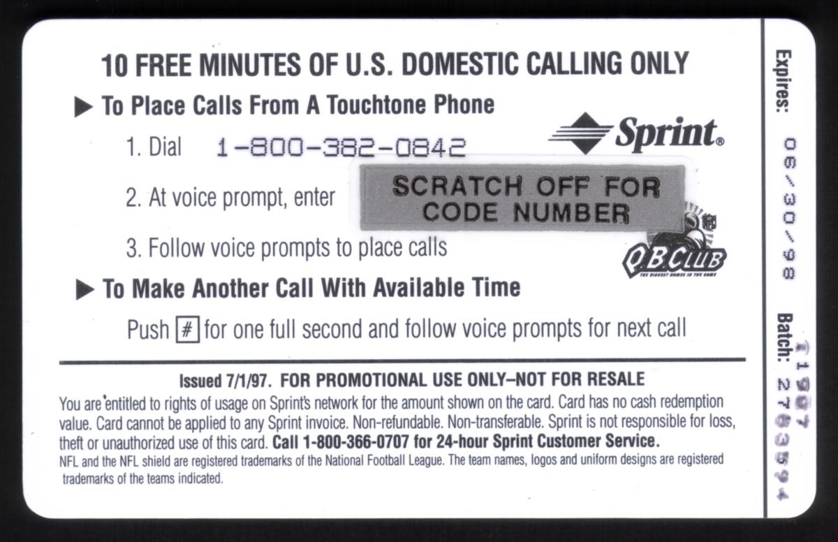 Since we have the world's largest inventory of USA phonecards for collectors, you will not necessarily receive the identical serial/batch/PIN number that we have scanned/pictured.