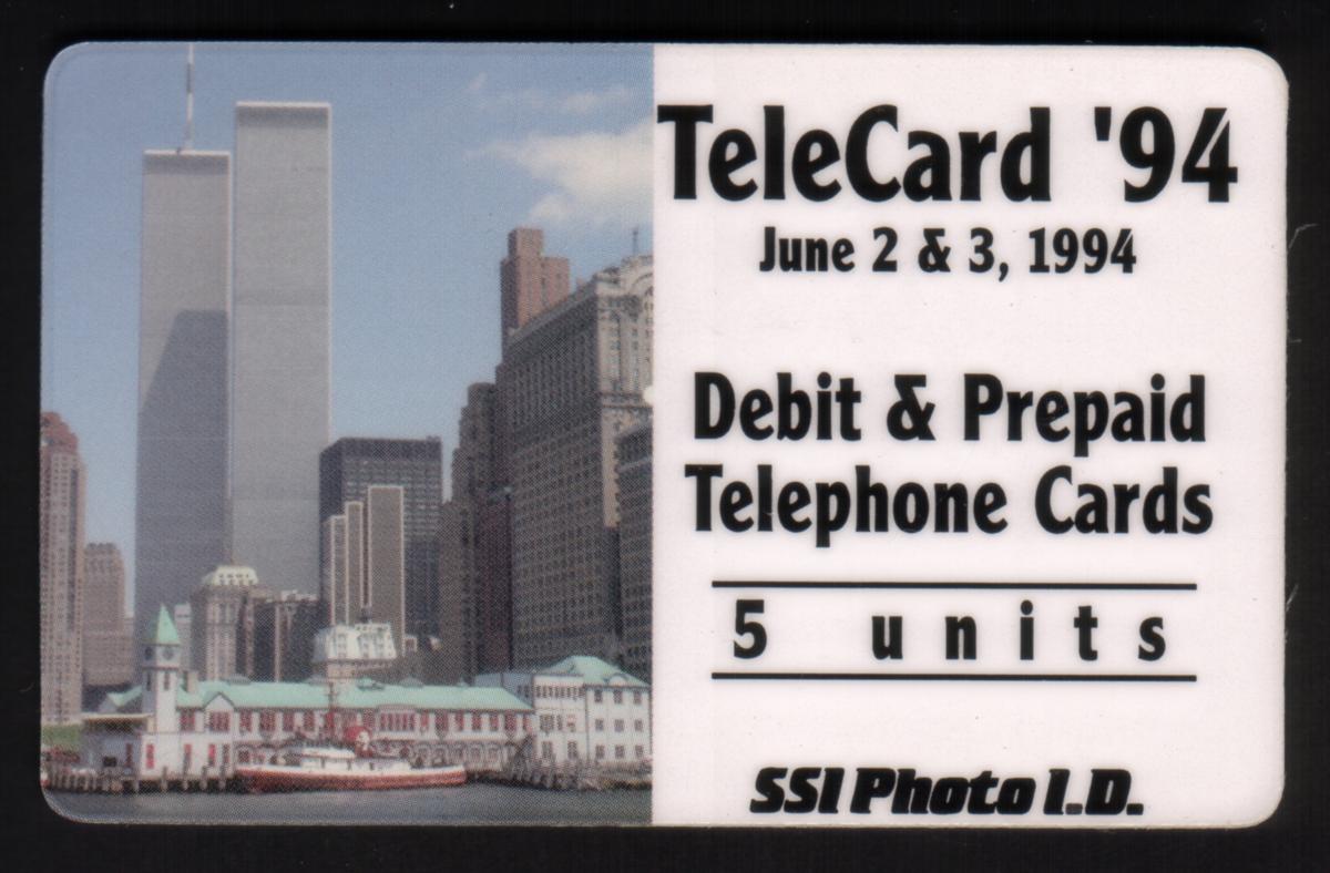 This card is connected to the TeleCard '94 Conference & Exposition and showcases the World Trade Center as a key symbol of New York City. The design and details underline its role as a collectible item representing the telecommunications event held in 1994.