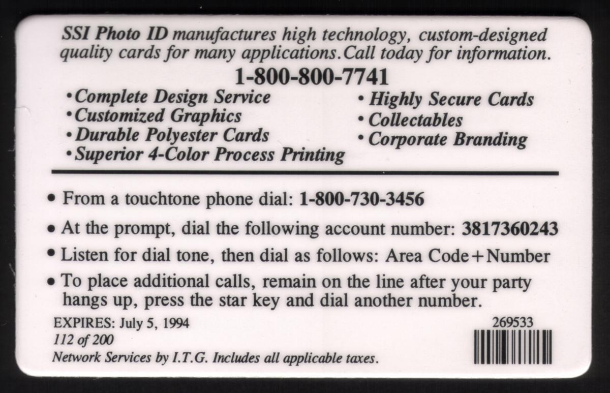 Since we have the world's largest inventory of USA phonecards for collectors, you will not necessarily receive the identical serial/batch/PIN number that we have scanned/pictured.
