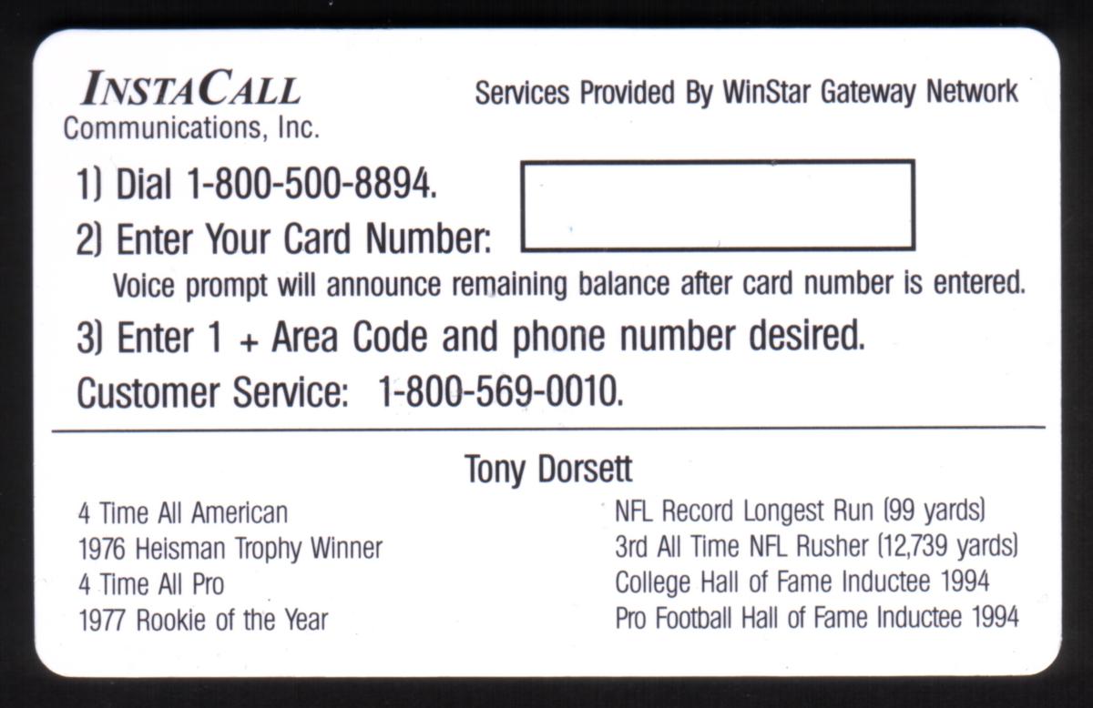 These two collectible phone cards feature Tony Dorsett, a Hall of Fame football player known for wearing jersey number 33. Both cards are part of the Winstar Gateway Network and are themed around the Super Bowl, with a $25 value clearly indicated on each.