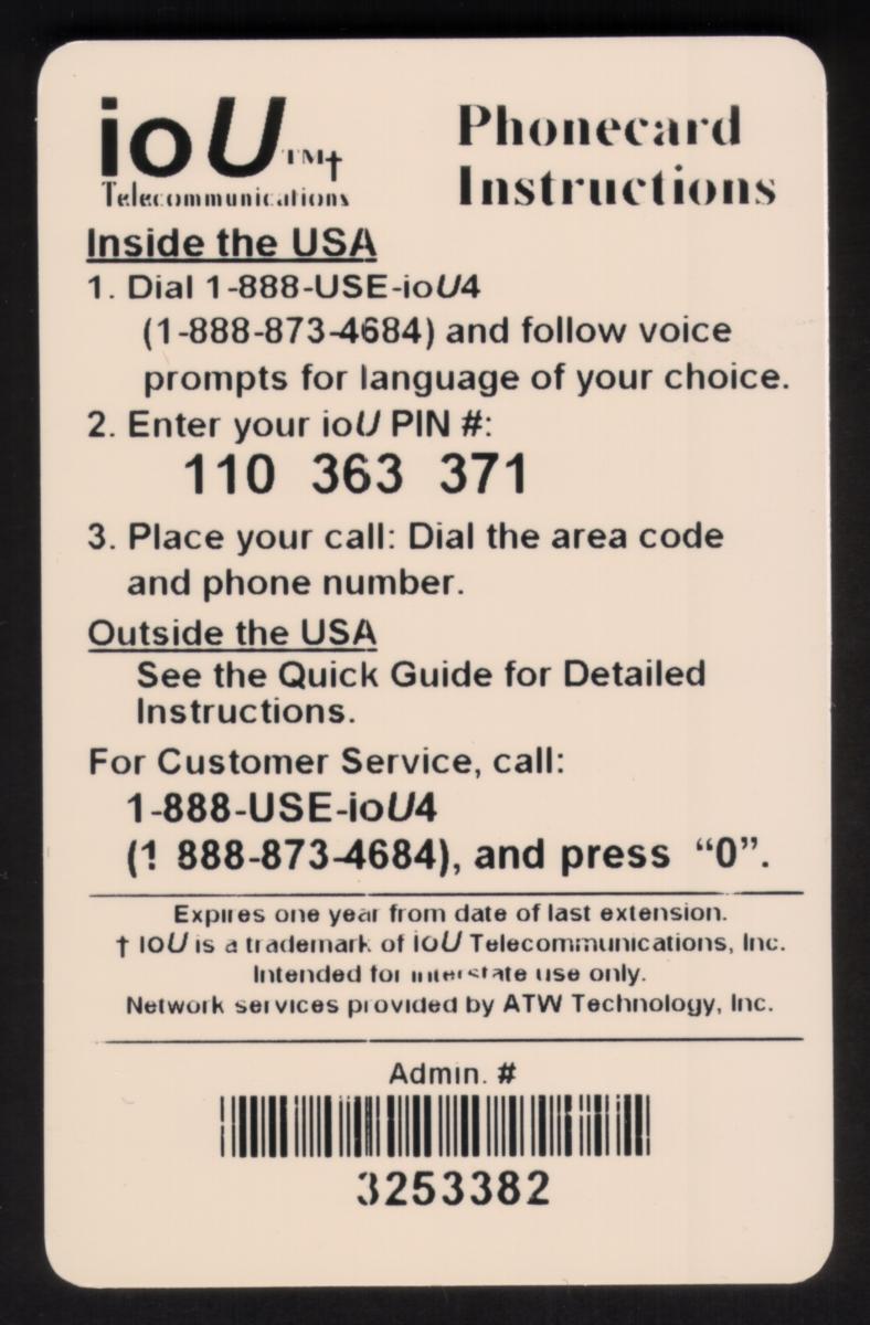 Since we have the world's largest inventory of USA phonecards for collectors, you will not necessarily receive the identical serial/batch/PIN number that we have scanned/pictured.