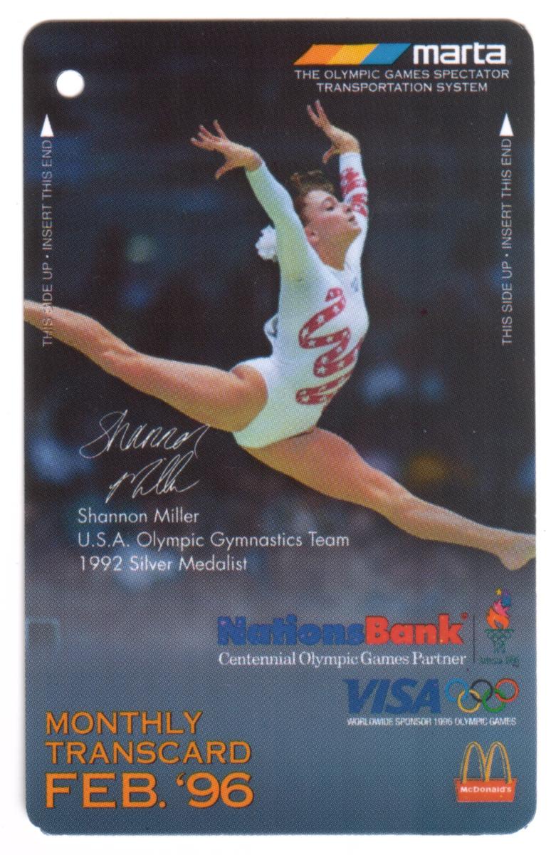 The card represents the MARTA Olympic Games Spectator Transportation System used during the 1996 Olympic Games held in Atlanta, Georgia. It has logos for NationsBank, labeled as the Centennial Olympic Games Partner, VISA, and the Olympic rings. The McDonald’s logo is visible in the bottom right corner, highlighting its sponsorship connection.