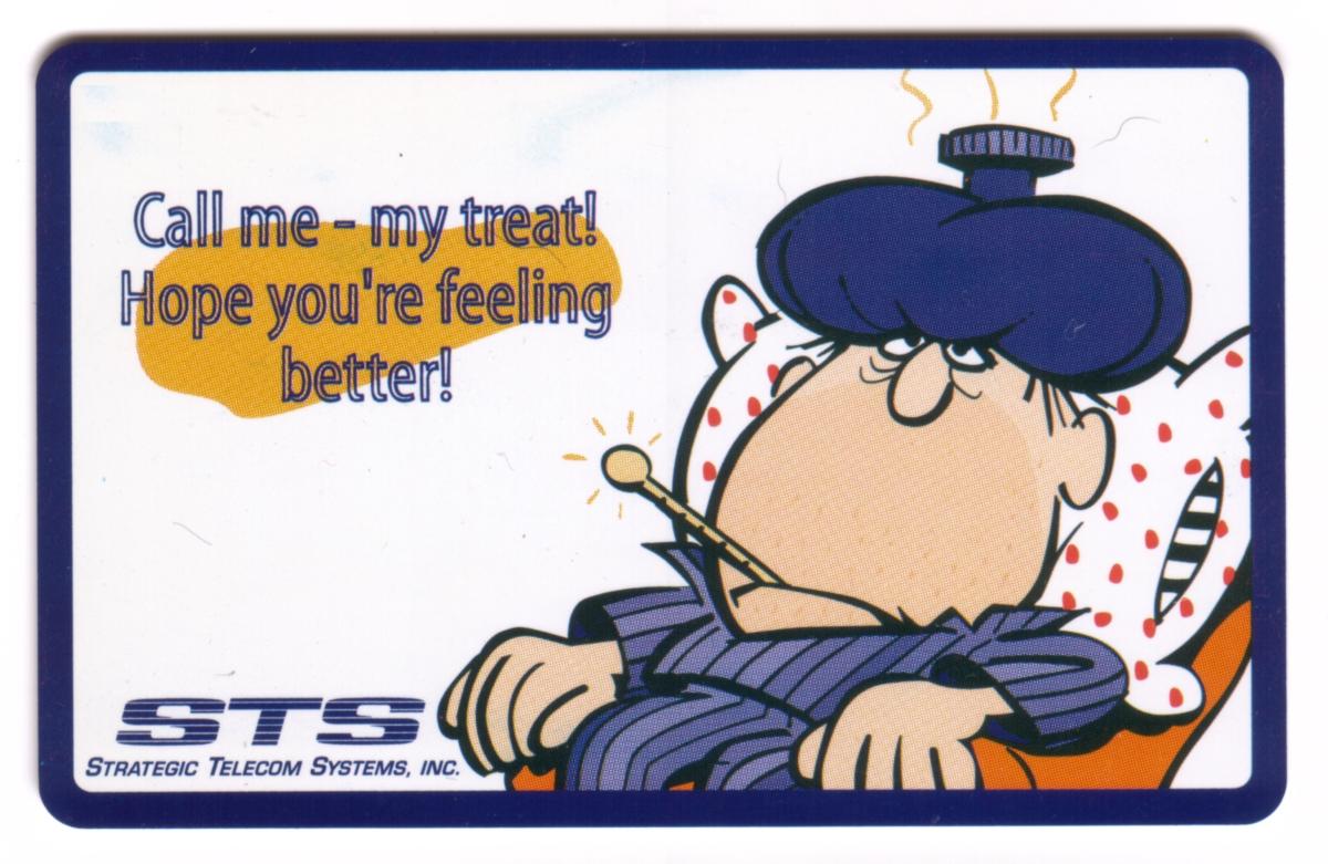 This STS Phonetime Greetings card is part of the STS Collector Series and is themed as a Get Well Greeting. It combines artistic cartoon design with a caring message aimed at someone who is sick, offering a thoughtful and lighthearted way to convey good wishes.