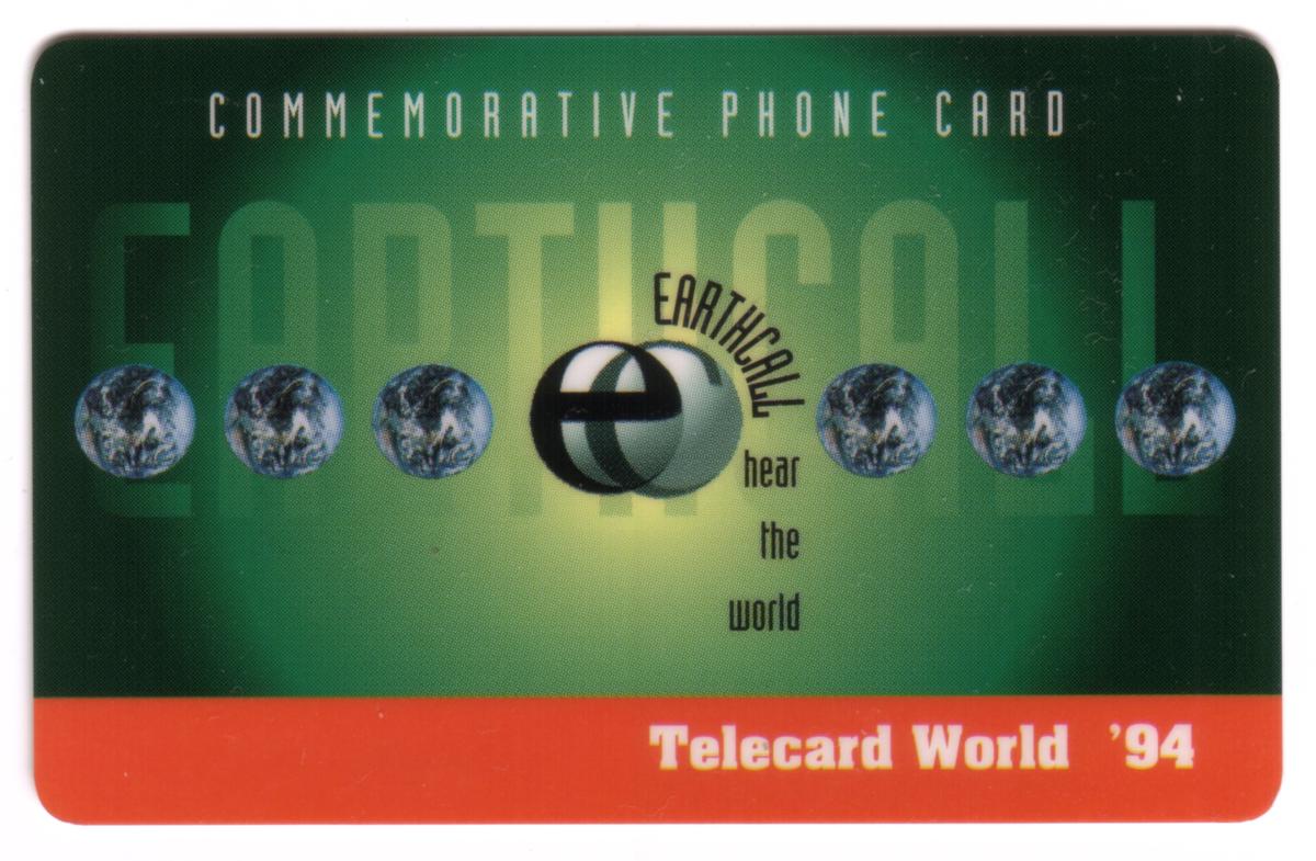 The overall design combines elements of global connectivity and technology, emphasizing the Earth and communication themes linked to EarthCall and Telecard World 1994. The imagery and text are crisp and clear, reinforcing the card’s commemorative purpose.
