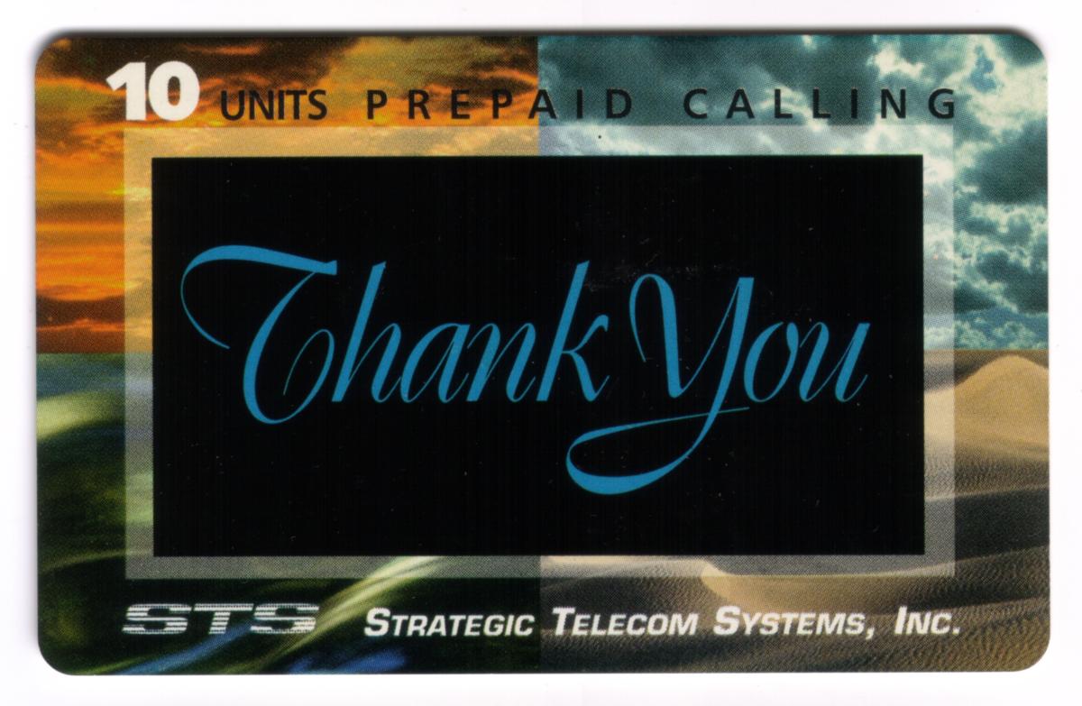 This phone card is designed for collectors and users interested in greeting cards with telecommunications themes. It combines a message of thanks with corporate branding from Strategic Telecom Sys and Zenex, making it a unique item that blends artistic expression with practical telecom functions. The card’s imagery and text work together to create a sophisticated, meaningful message without any additional characters or complex graphics.