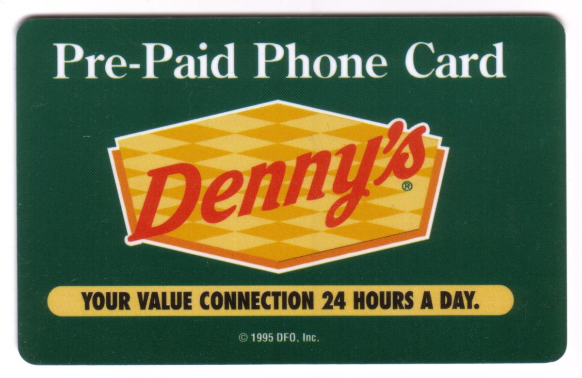 Overall, the card combines branding and functionality for customers needing prepaid telephone access, highlighting Denny's commitment to value and round-the-clock service.