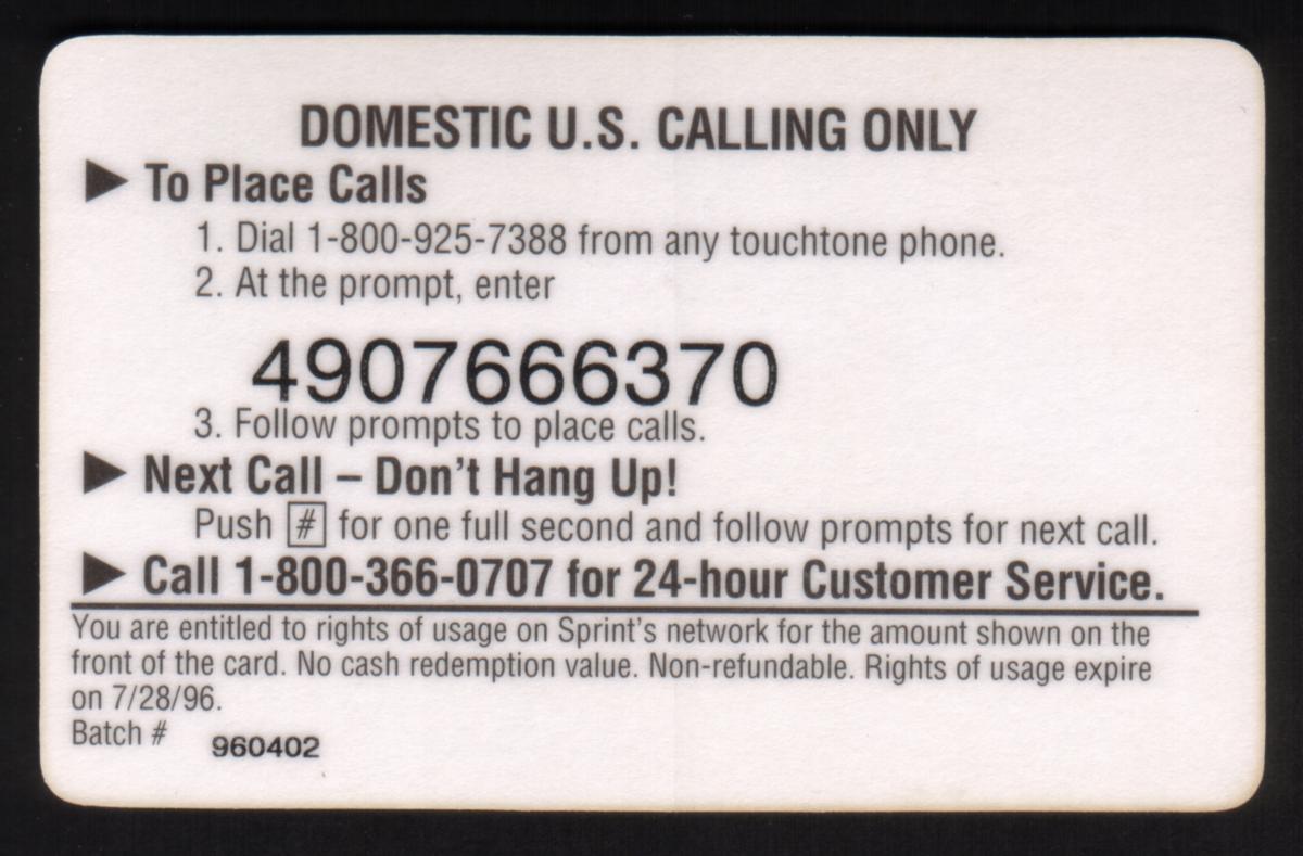Since we have the world's largest inventory of USA phonecards for collectors, you will not necessarily receive the identical serial/batch/PIN number that we have scanned/pictured.