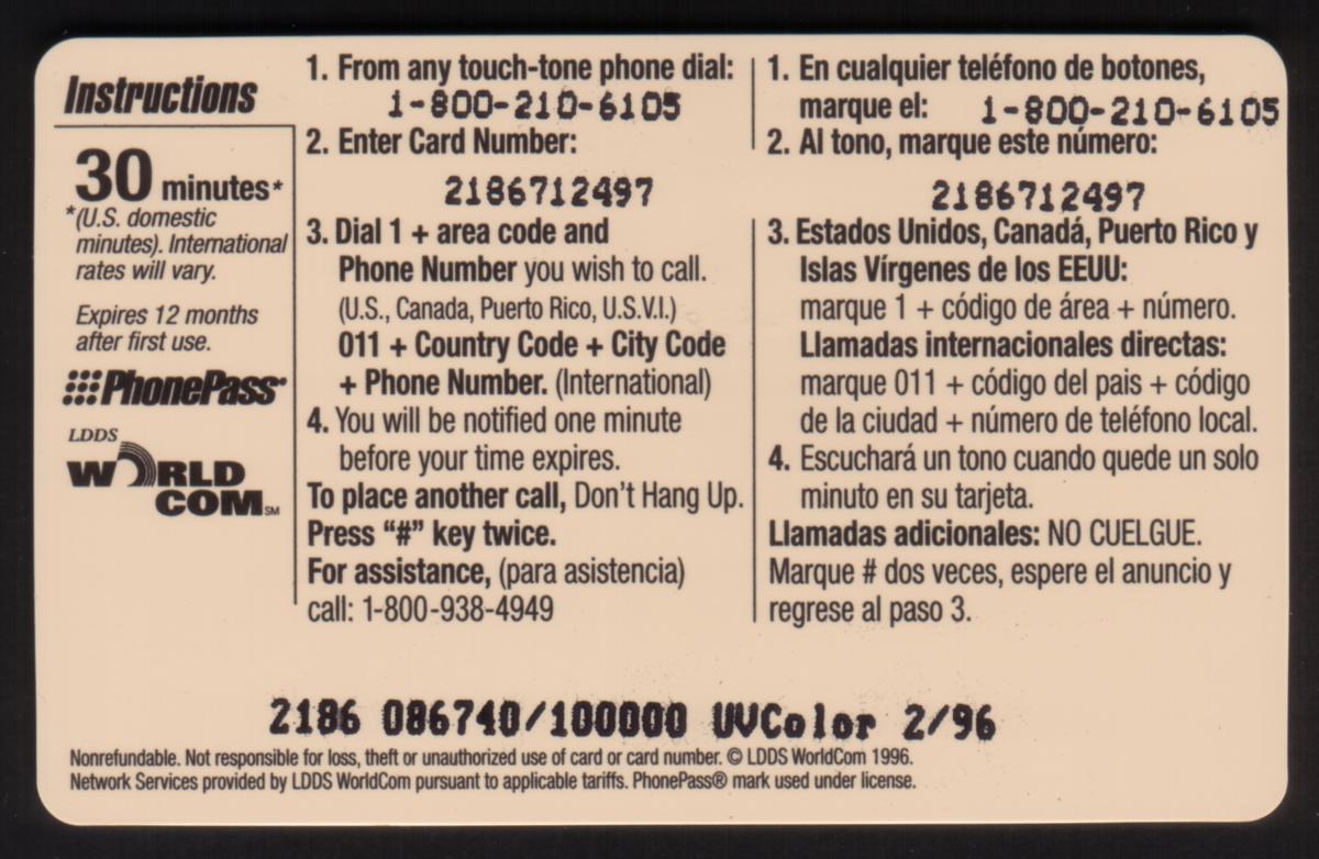 Since we have the world's largest inventory of USA phonecards for collectors, you will not necessarily receive the identical serial/batch/PIN number that we have scanned/pictured.