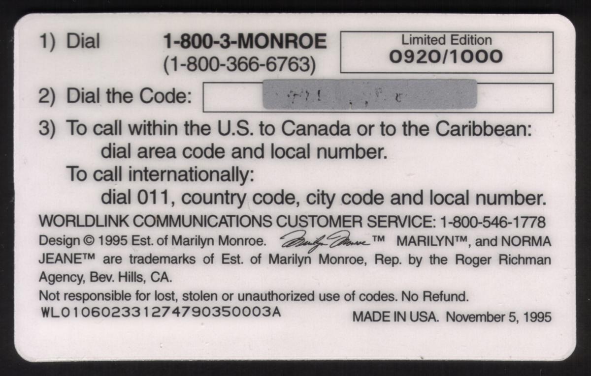 Since we have the world's largest inventory of USA phonecards for collectors, you will not necessarily receive the identical serial/batch/PIN number that we have scanned/pictured.