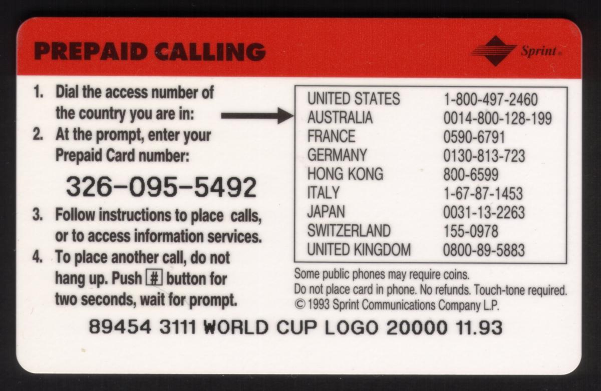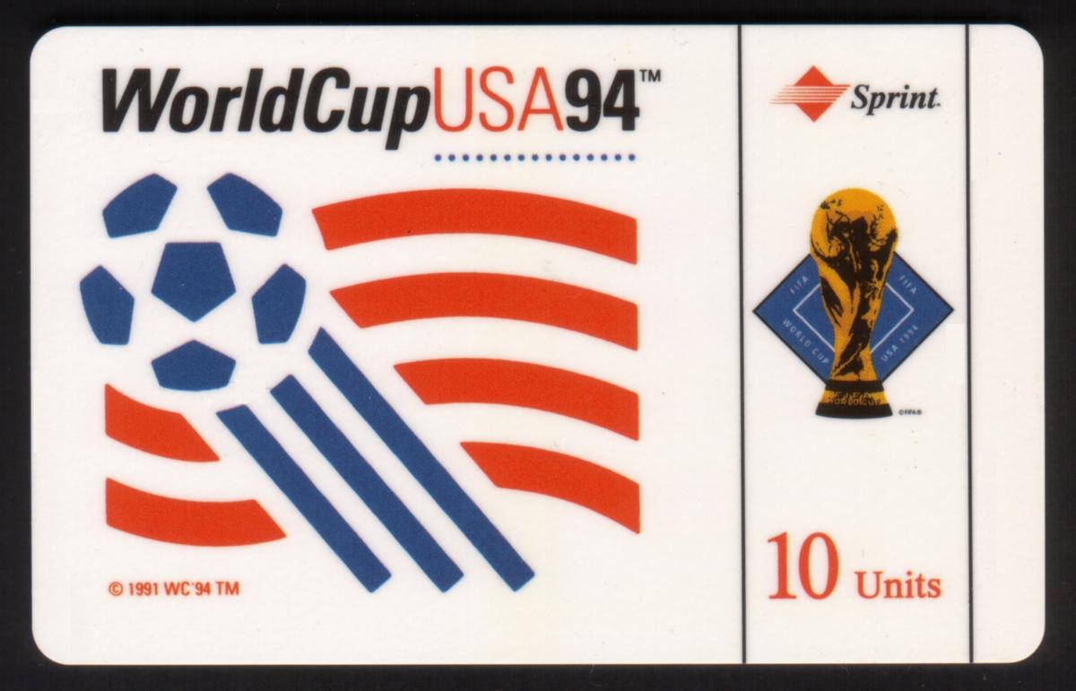 The card also includes the copyright notation "© 1991 WC 94 TM" beneath the main logo area, authenticating its official licensing for the 1994 FIFA World Cup held in the United States. The overall design emphasizes the connection between Sprint and the international soccer event.