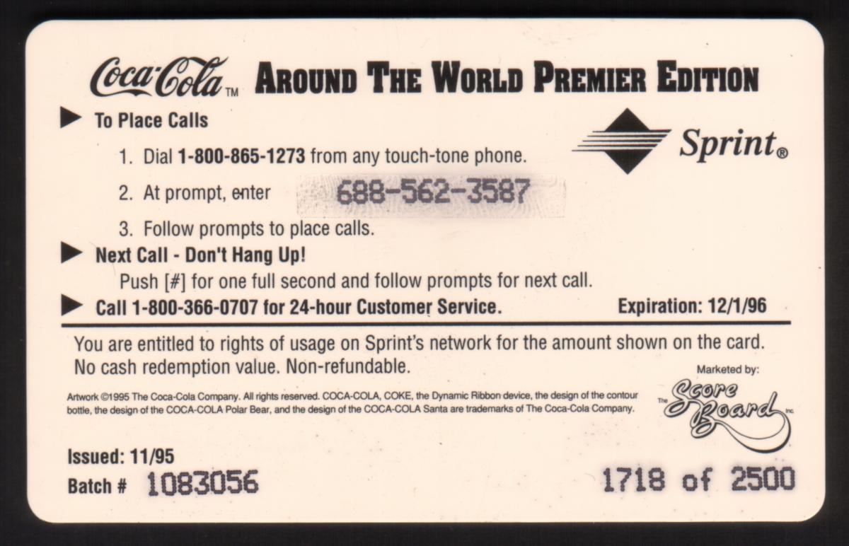 Since we have the world's largest inventory of USA phonecards for collectors, you will not necessarily receive the identical serial/batch/PIN number that we have scanned/pictured.