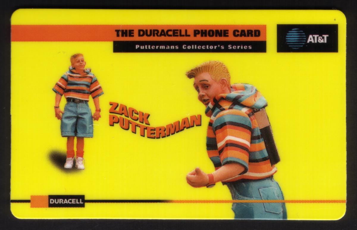 All four cards include the Duracell logo at the bottom left and AT&T branding at the top right, emphasizing the collaboration between Duracell and AT&T for this promotional phone card set themed around the Puttermans characters.