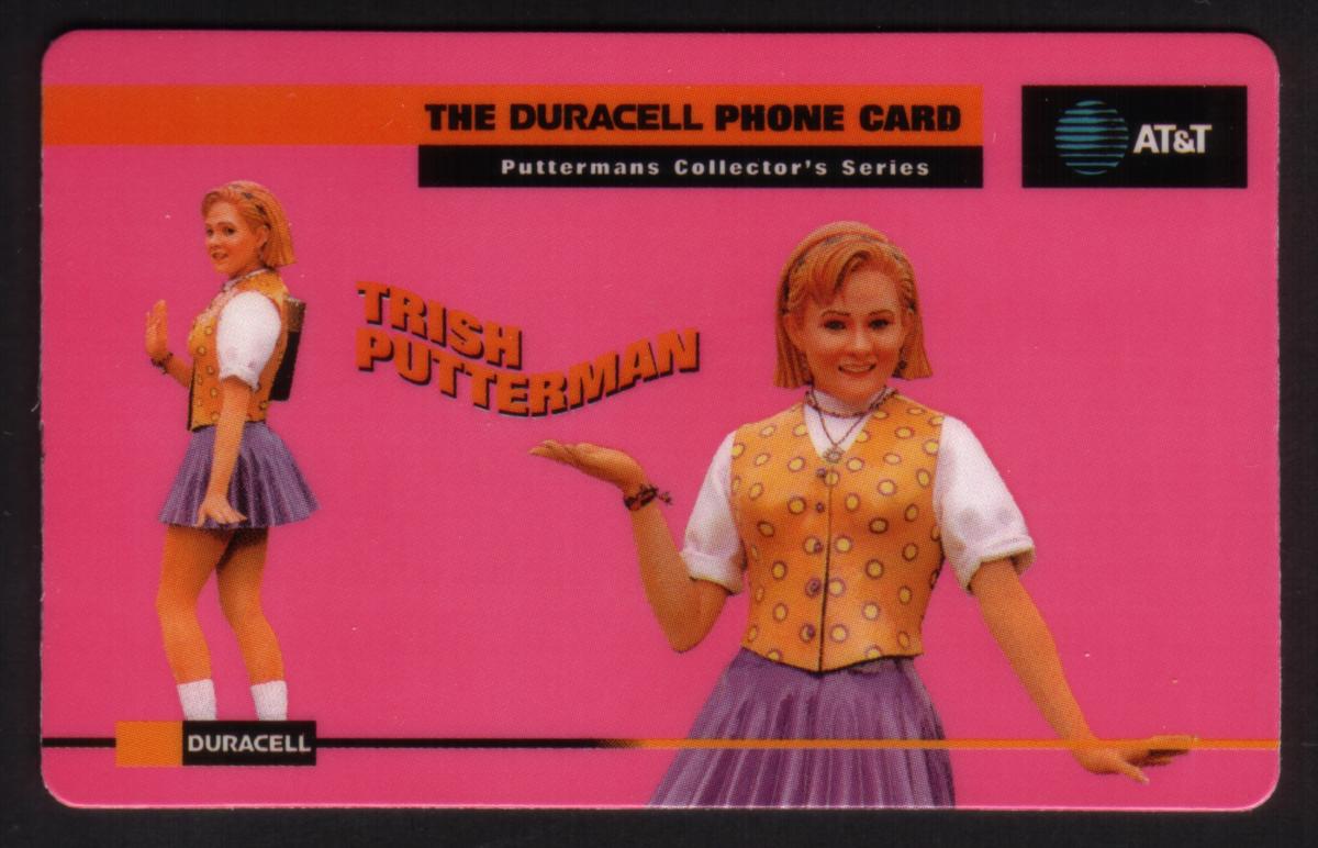 These four collectible phone cards are from the Duracell Phone Card series featuring characters from the Puttermans Collector's Series, issued by AT&T. Each card prominently displays a detailed figure of a Puttermans character set against a solid colored background with the character's name in bold orange text.