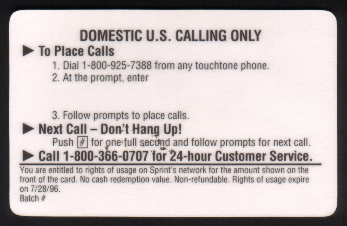 Since we have the world's largest inventory of USA phonecards for collectors, you will not necessarily receive the identical serial/batch/PIN number that we have scanned/pictured.