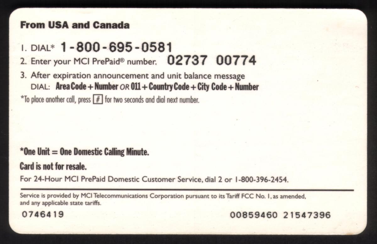 Since we have the world's largest inventory of USA phonecards for collectors, you will not necessarily receive the identical serial/batch/PIN number that we have scanned/pictured.
