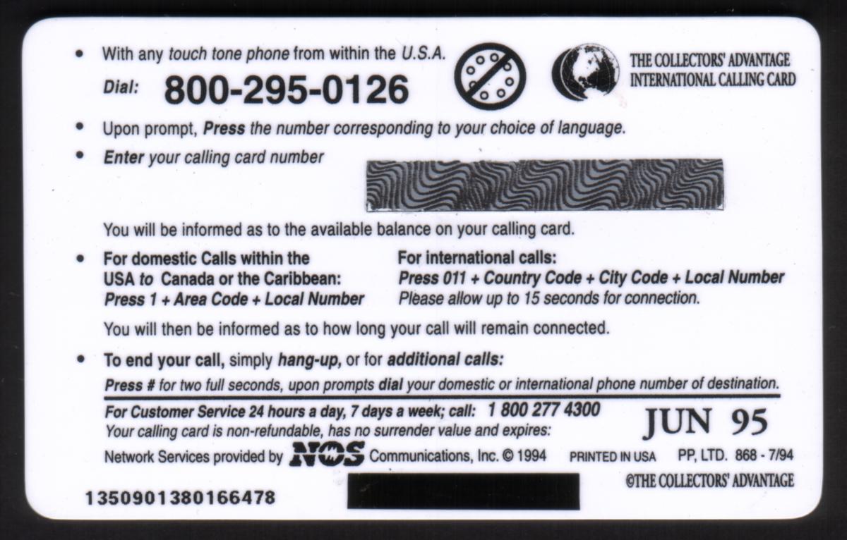 Since we have the world's largest inventory of USA phonecards for collectors, you will not necessarily receive the identical serial/batch/PIN number that we have scanned/pictured.