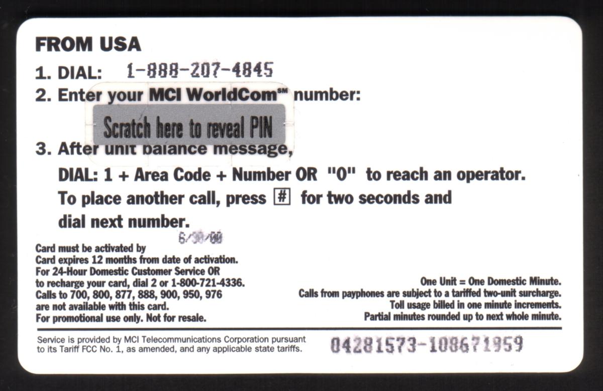 Since we have the world's largest inventory of USA phonecards for collectors, you will not necessarily receive the identical serial/batch/PIN number that we have scanned/pictured.