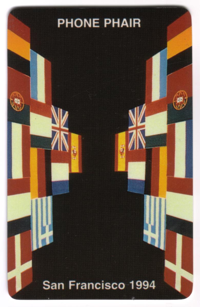 This phone card is associated with phone card collections, expos, and telecard events indicated by the references to Show Cards and related keywords. The card’s design highlights its international theme through the various national flags, making it a collector’s item linked to the global telecommunications context.