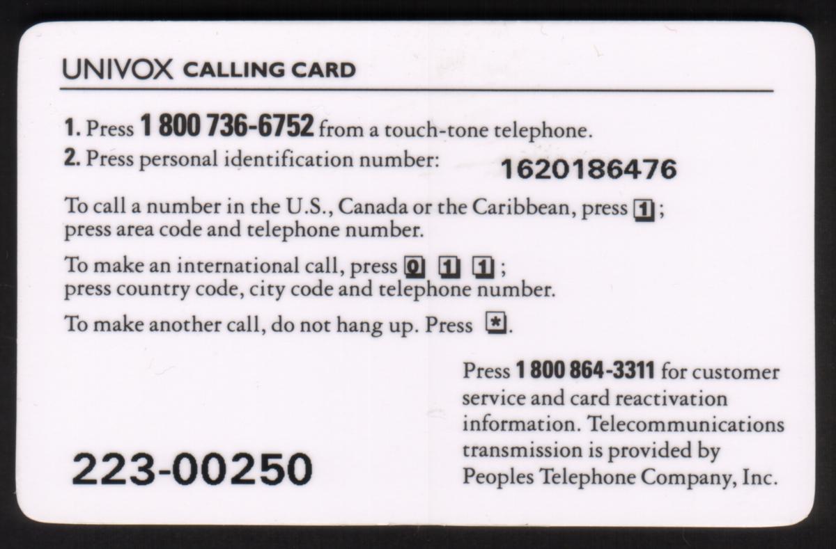 Since we have the world's largest inventory of USA phonecards for collectors, you will not necessarily receive the identical serial/batch/PIN number that we have scanned/pictured.
