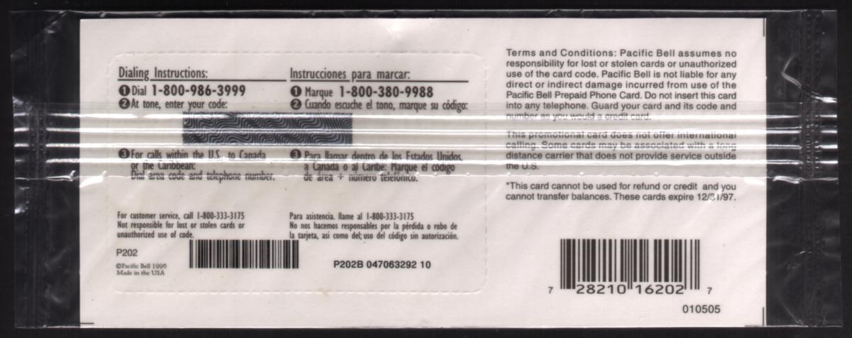 Since we have the world's largest inventory of USA phonecards for collectors, you will not necessarily receive the identical serial/batch/PIN number that we have scanned/pictured.
