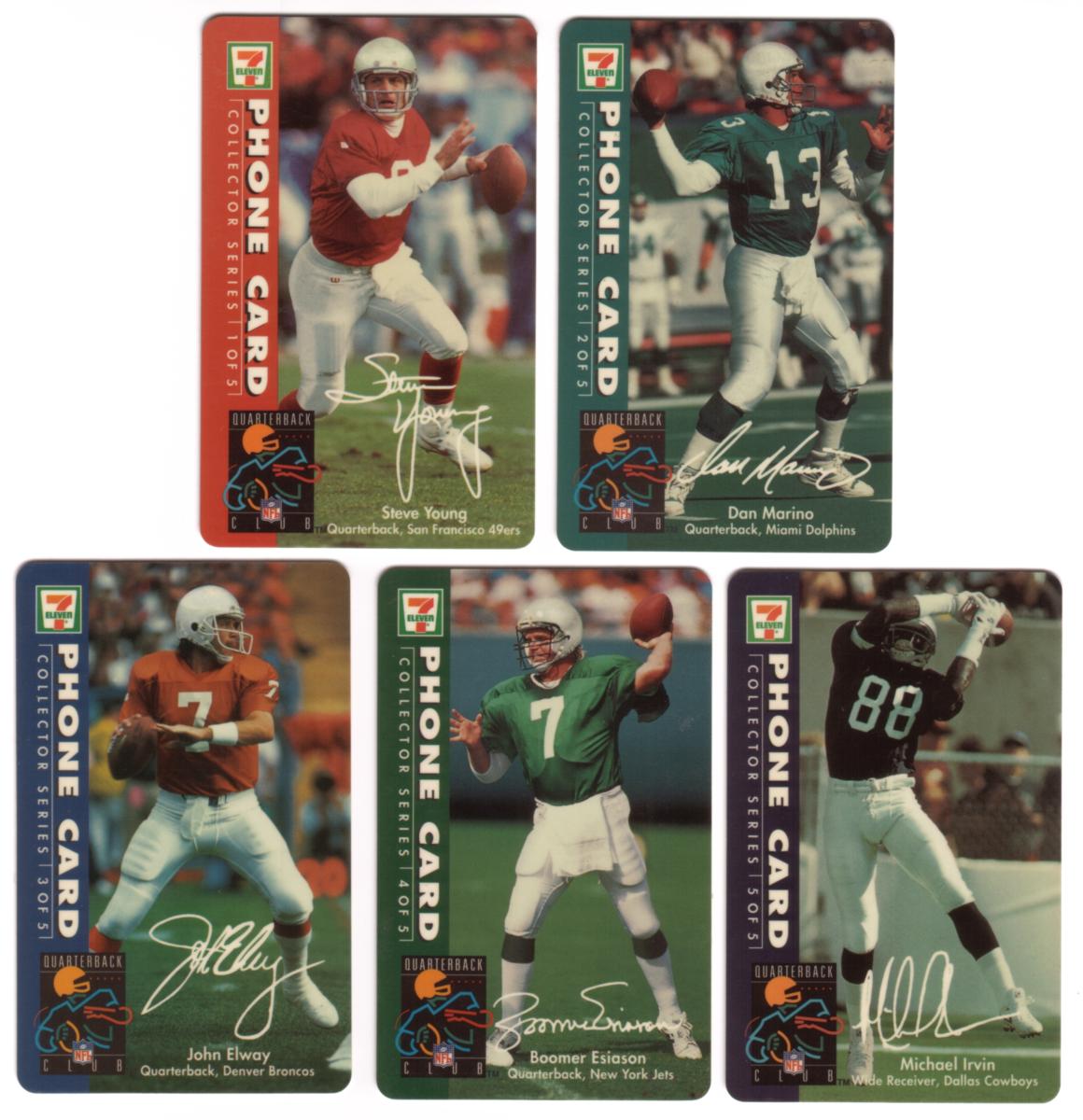 Keywords: setof, Sports: Football, NFL, National Football League, Football players, 7-11, 7/11, seven-eleven, seven eleven, dan marino, john elway, michael irvin, boomer esiason, steve young, MCI