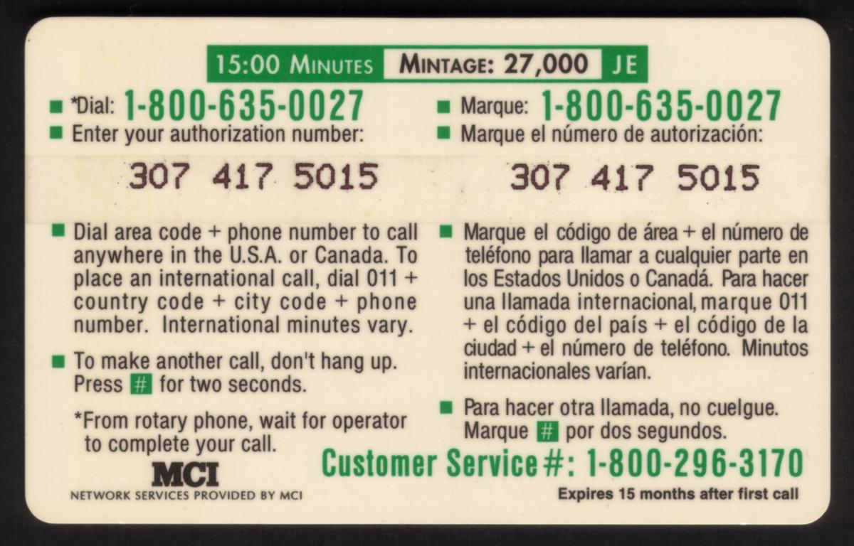 Since we have the world's largest inventory of USA phonecards for collectors, you will not necessarily receive the identical serial/batch/PIN number that we have scanned/pictured.