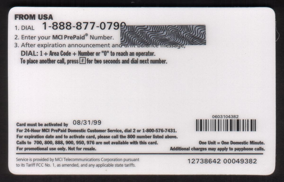 Since we have the world's largest inventory of USA phonecards for collectors, you will not necessarily receive the identical serial/batch/PIN number that we have scanned/pictured.