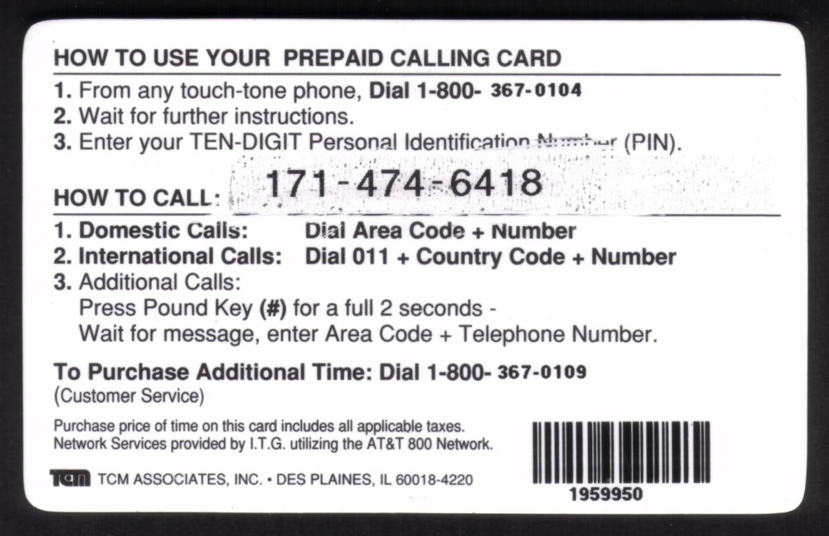 Since we have the world's largest inventory of USA phonecards for collectors, you will not necessarily receive the identical serial/batch/PIN number that we have scanned/pictured.