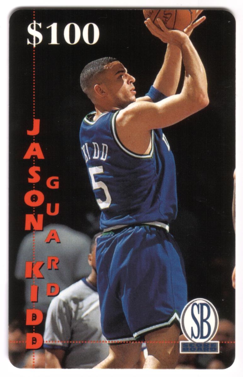 This card is associated with basketball, the NBA, and specifically the player Jason Kidd, highlighting his position as a guard. The detailed photograph is clear and sharp, emphasizing the sports theme and the player’s action during a game.
