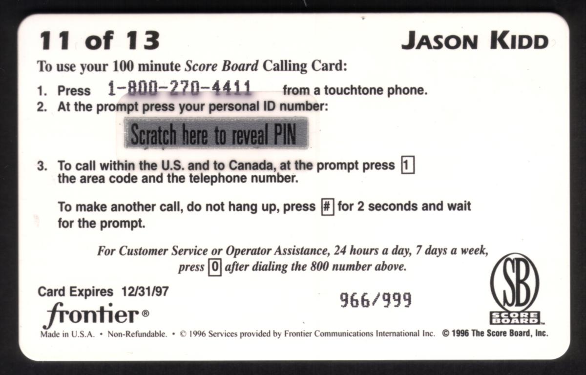 Since we have the world's largest inventory of USA phonecards for collectors, you will not necessarily receive the identical serial/batch/PIN number that we have scanned/pictured.