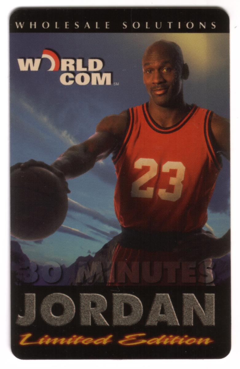 This card is marked with "LE Wholesale Solutions 1998" and references "LDDS WorldCom," connecting it to a specific series or promotional release from 1998. The imagery, combined with the text elements, celebrates Michael Jordan as a legendary NBA basketball player and collectible sports figure.