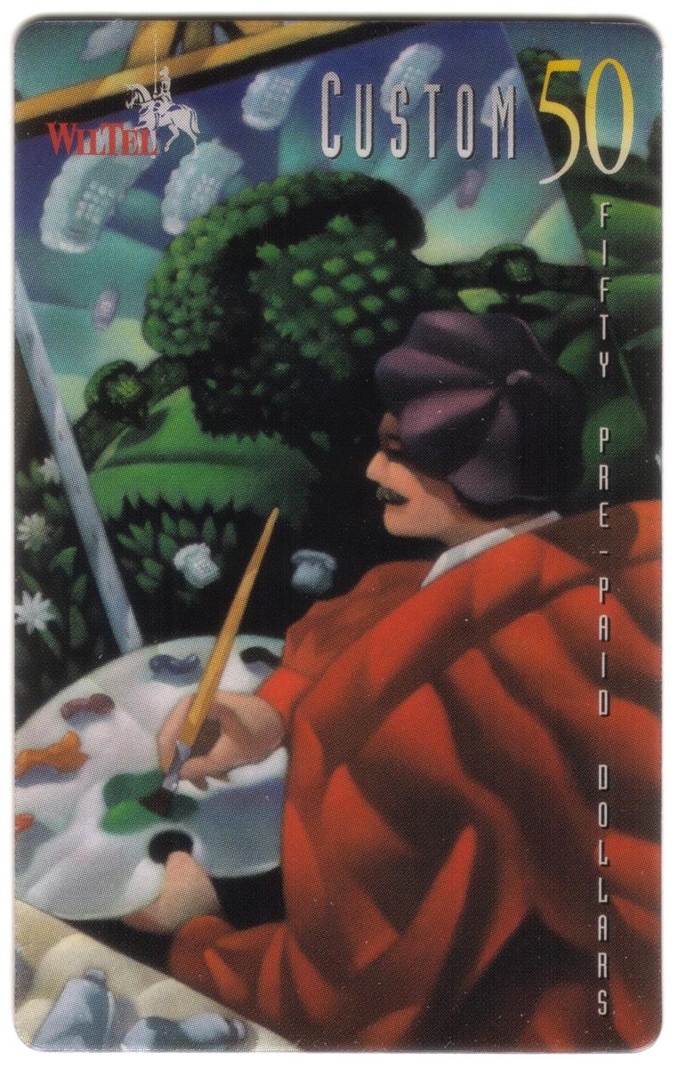 Together, these cards form a visually striking and imaginative WilTel Custom Art Series set focused on fantasy art intertwining telephones, arranged in pre-paid denominations from five to fifty dollars.